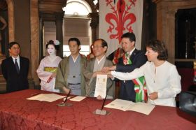 「京都市とフィレンツェ市姉妹都市50周年記念式典に出席